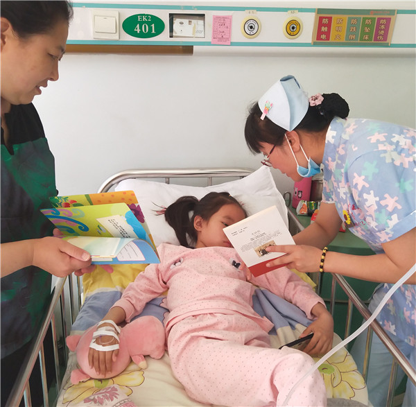 2019年4月20日在儿科发起绘本、故事、连环画等儿童读书的募捐活动,截止23日共收到医护人员68本爱心图书。科室在病区成立爱心图书角,供住院的孩子借阅,责任护士在闲余时间入病房指导孩子们阅读。图书角受到家长和孩子们喜欢,大家都积极的参与阅读。