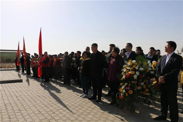 来自各单位的代表向抗日英雄纪念碑敬献了花篮,全体人员献上了鲜花,并用集体默哀的方式,共同追忆那些为国献身的铮铮烈骨,向长眠在此的烈士们致敬。