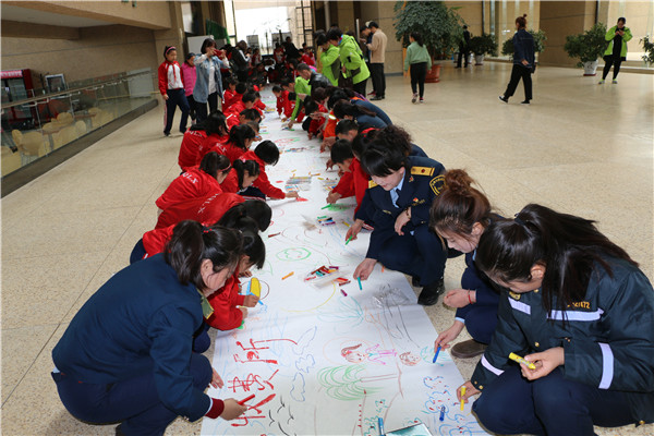 来自第六小学的师生代表以及运管分局、公路管理工区、电信公司、供电局、中国银行达旗支行、解放滩收费所、巡逻防暴警察大队、欣康医院等十多家文明单位共计300余人参与此次活动。